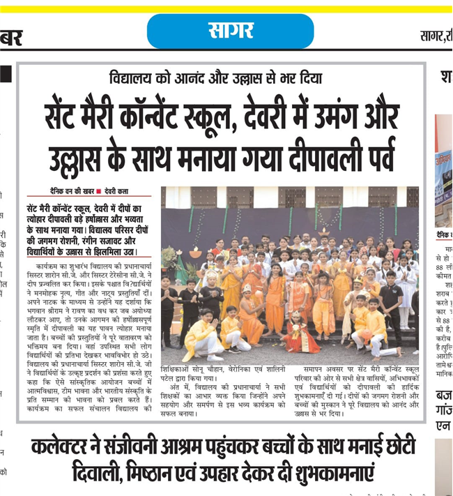 सेंट मैरी कॉन्वेंट स्कूल में उमंग और उल्लास के साथ मनाया दीपावली पर्व